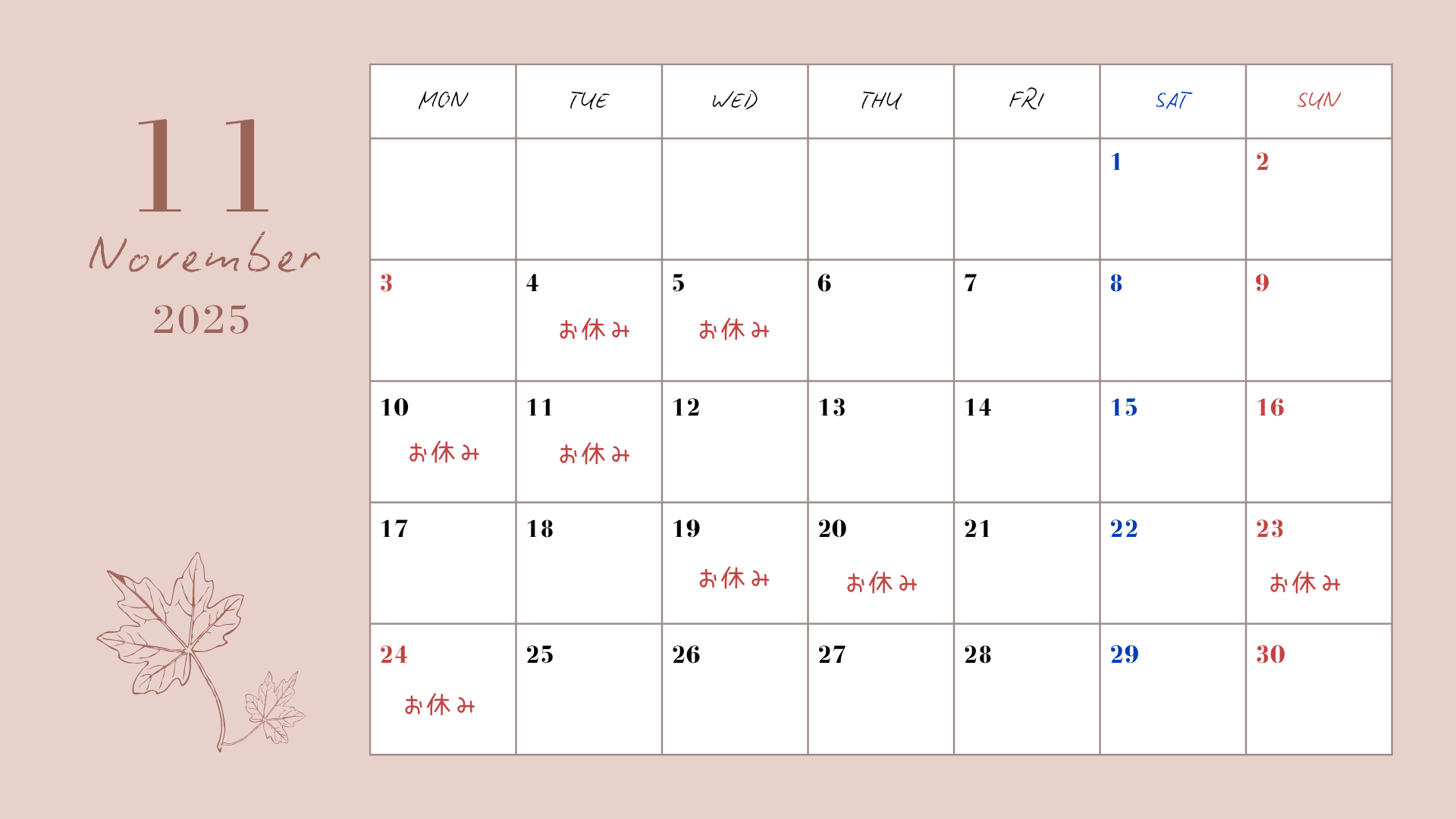 営業日等の変更の情報はHP、SNSをご確認ください。